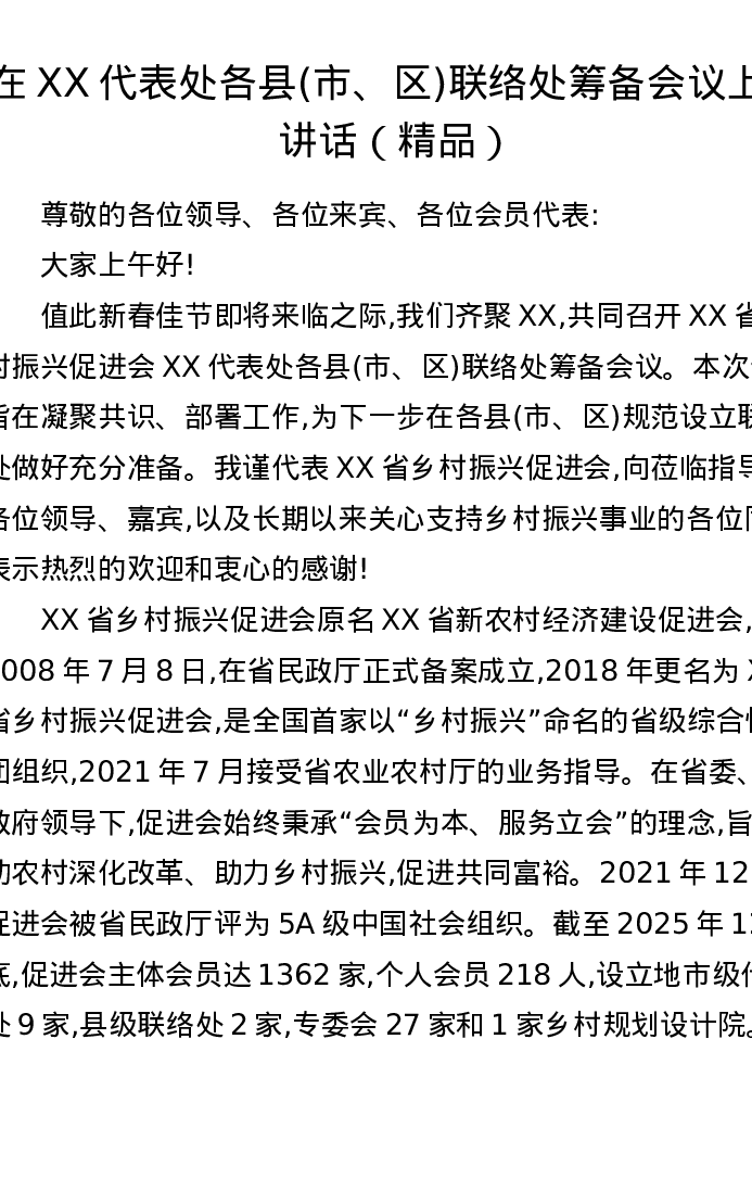 在XX代表处各县(市、区)联络处筹备会议上的讲话(精品)
