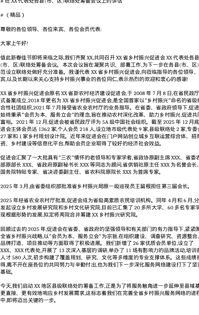 在XX代表处各县(市、区)联络处筹备会议上的讲话