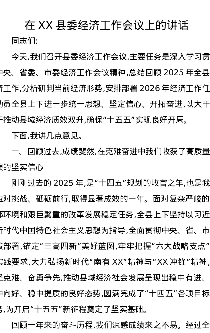在XX县委经济工作会议上的讲话(2)