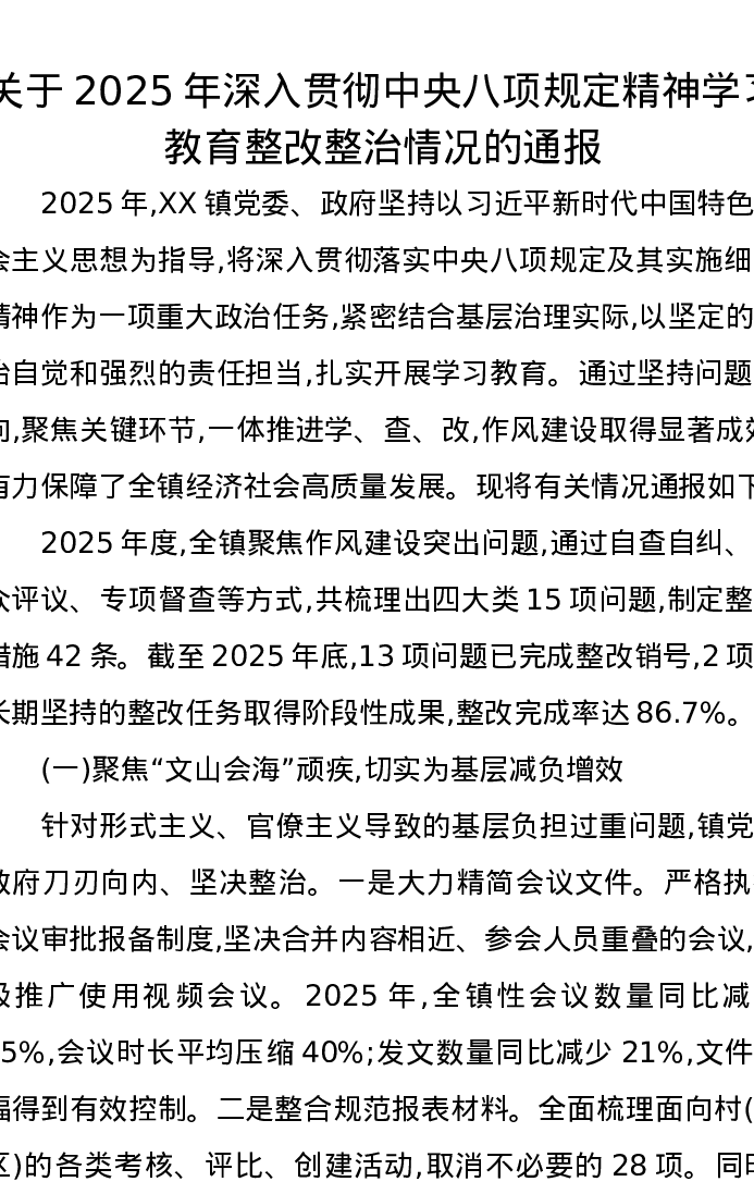 关于2025年深入贯彻中央八项规定精神学习教育整改整治情况的通报