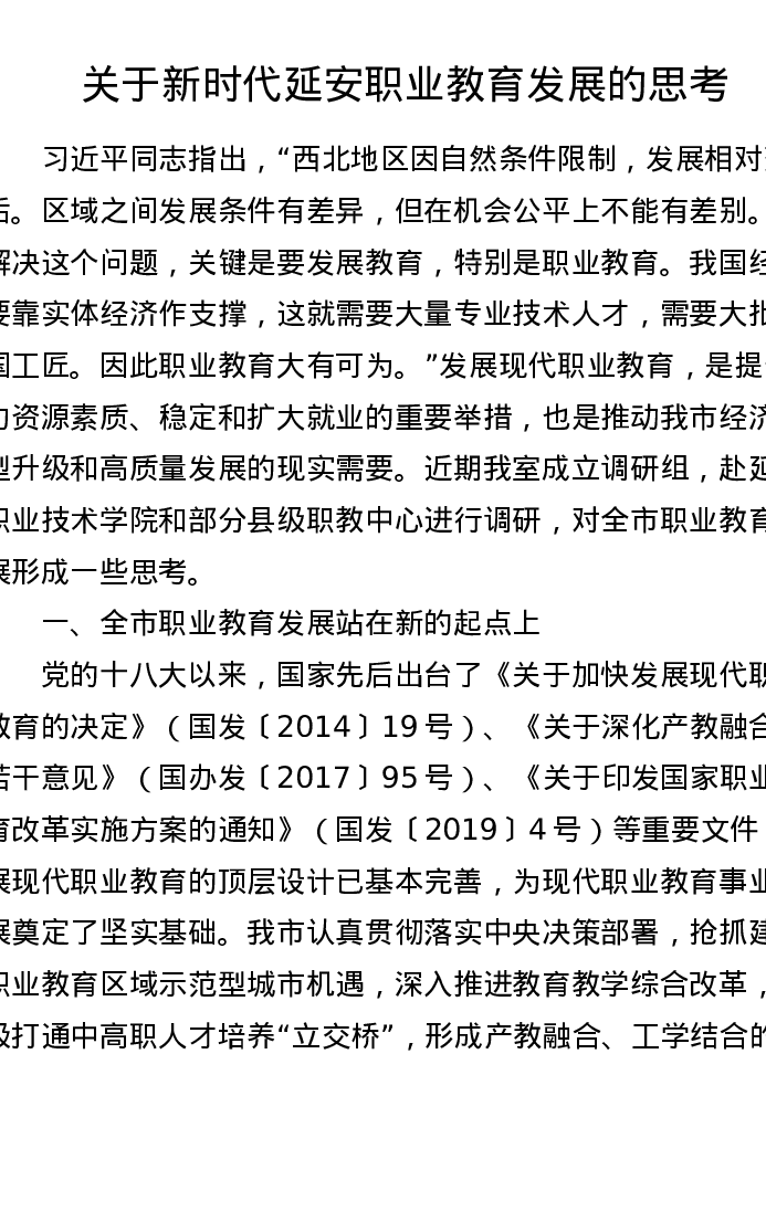调研报告:关于新时代延安职业教育发展的思考