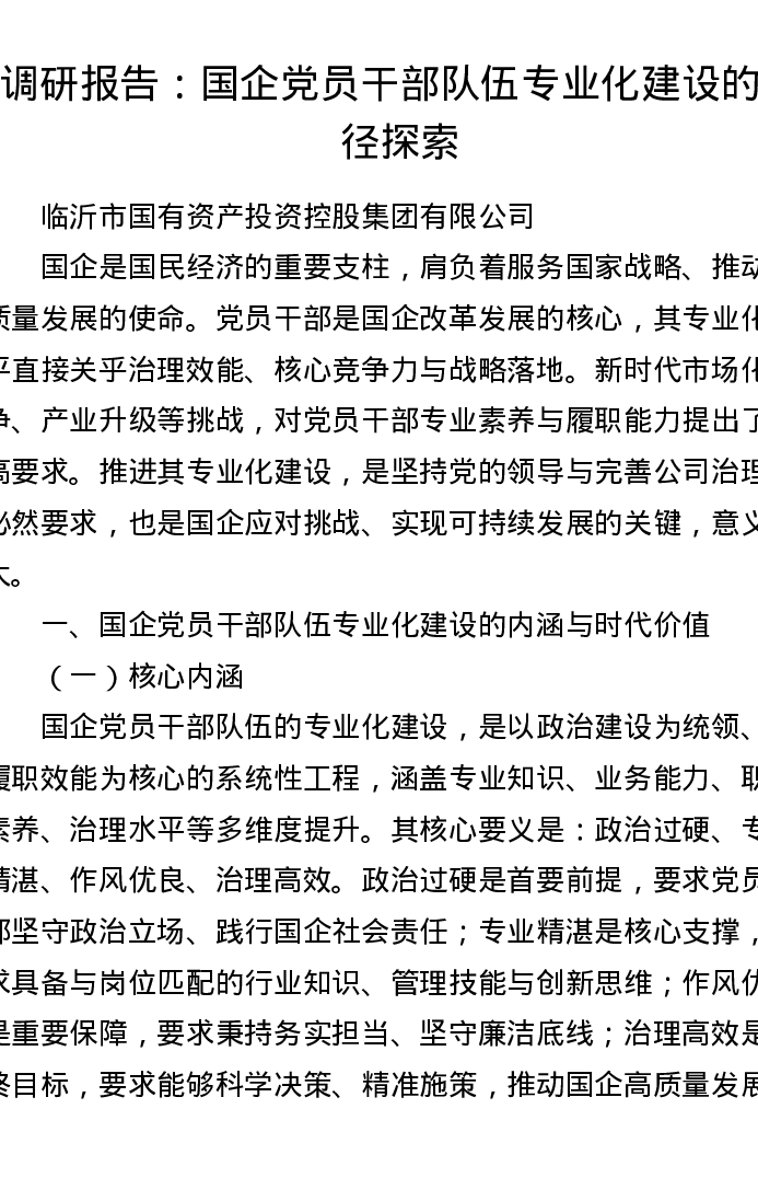 调研报告:国企党员干部队伍专业化建设的路径探索