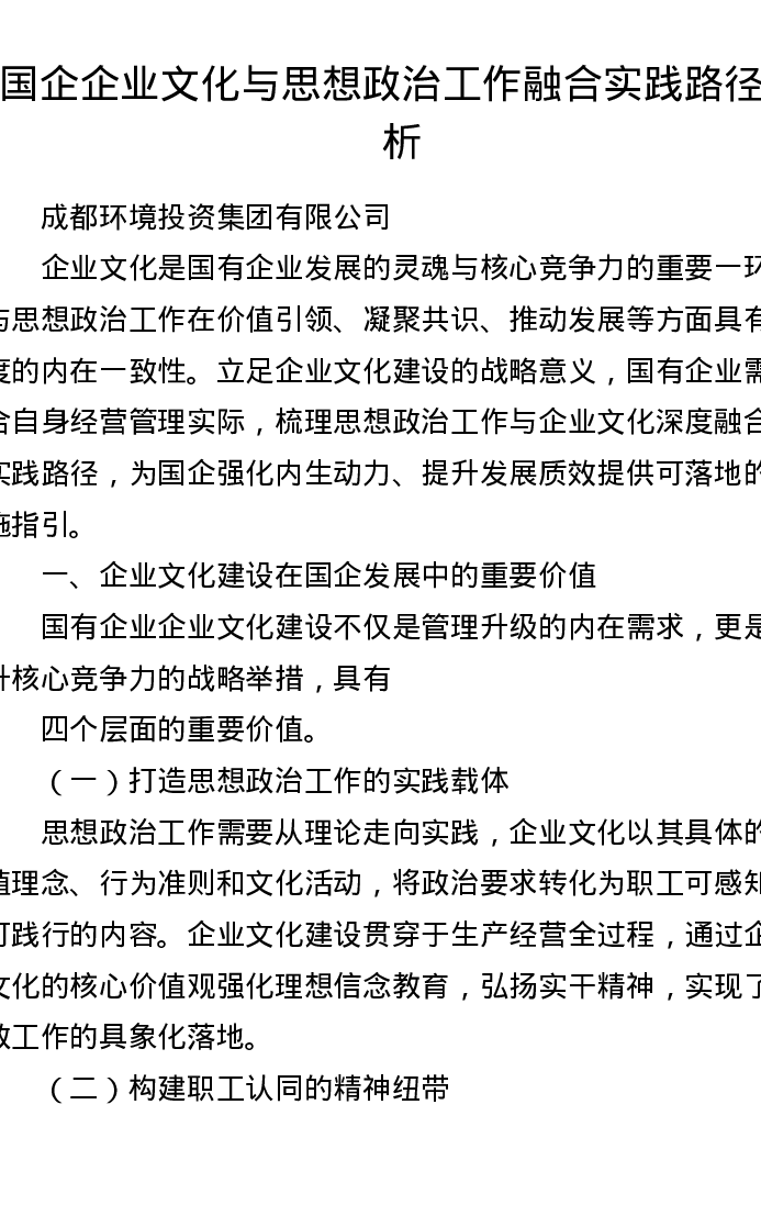 调研报告:国企企业文化与思想政治工作融合实践路径探析