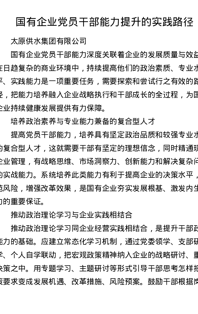 调研报告:国有企业党员干部能力提升的实践路径