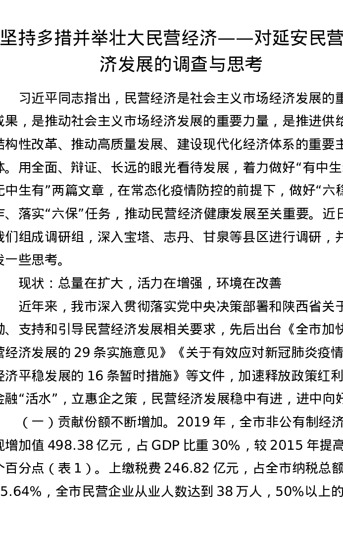 调研报告:坚持多措并 举壮大民营经济 ——对延安民营经济发展的调查与思考