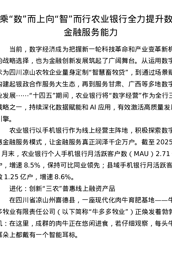 乘数而上 向智而行农业银行全力提升数字金融服务能力