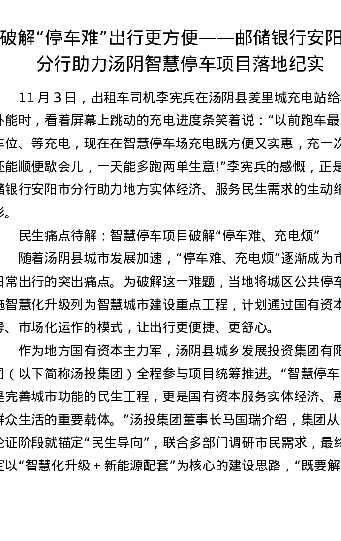 破解 停车难出行更方便——邮储银行安阳市分行助力汤阴智慧停车项目落地纪实