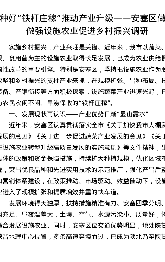 种好铁杆庄稼推动产业升级——安塞区做大做强设施农业促进乡村振兴调研