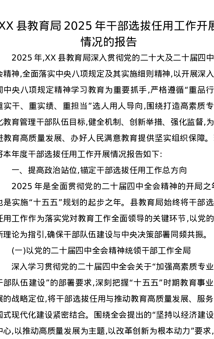 XX县教育局2025年干部选拔任用工作开展情况的报告