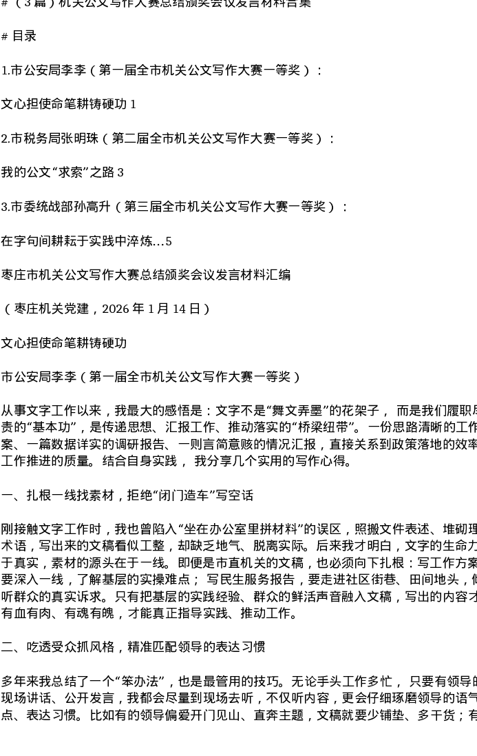 汇编:机关公文写作大赛总结颁奖会议发言材料合集4篇