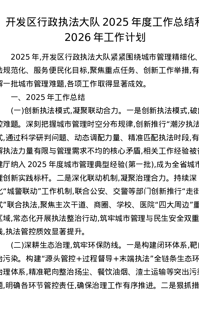 开发区行政执法大队2025年度工作总结和2026年工作计划