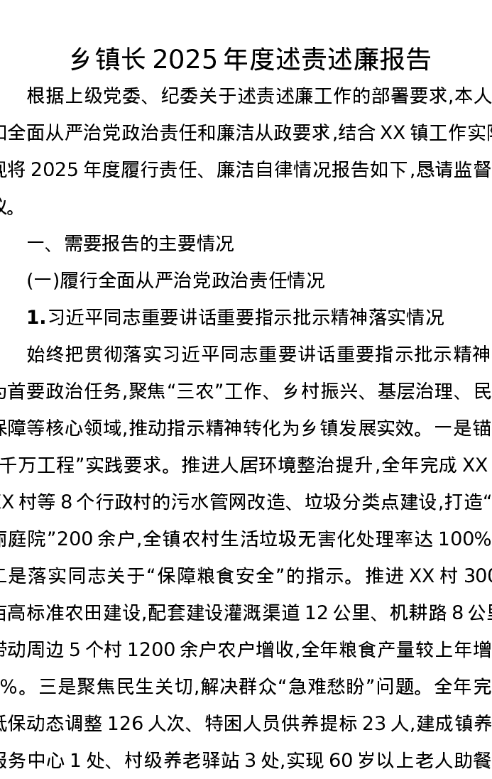 乡镇长2025年度述责述廉报告