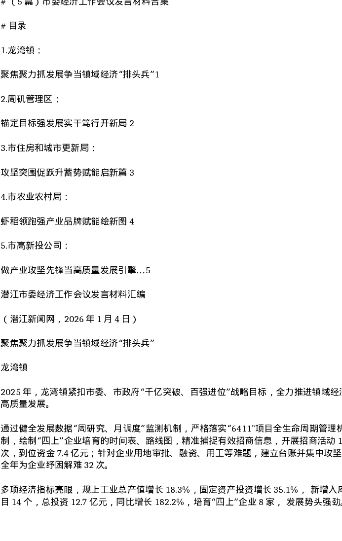 汇编:市委经济工作会议发言材料合集5篇
