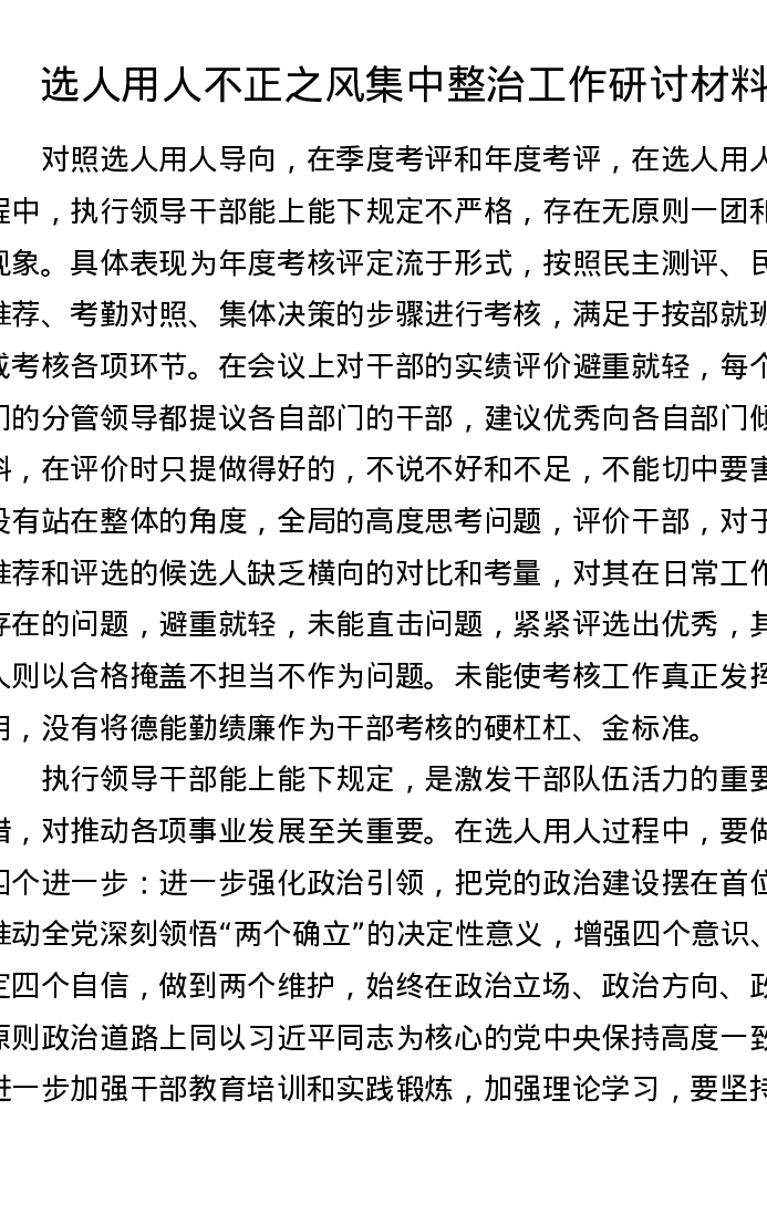 选人用人不正之风集中整治工作研讨发言材料