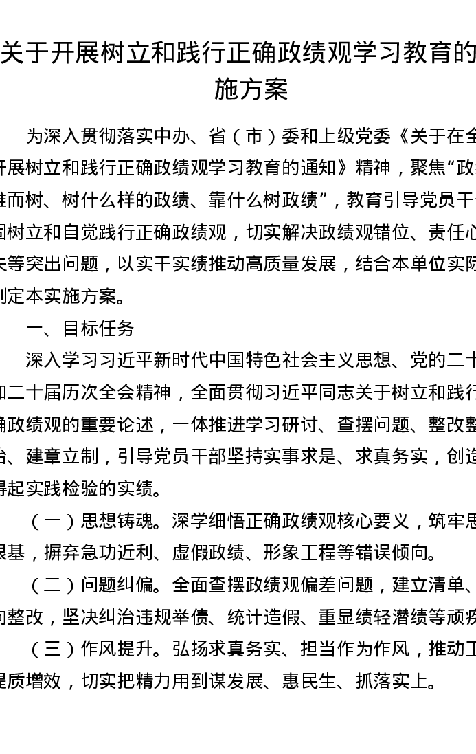 关于开展树立和践行正确政绩观学习教育的实施方案