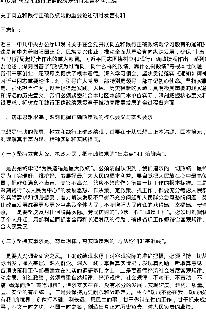 汇编:树立和践行正确政绩观研讨发言材料6篇