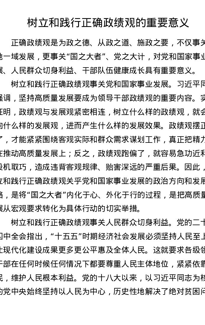 树立和践行正确政绩观的重要意义