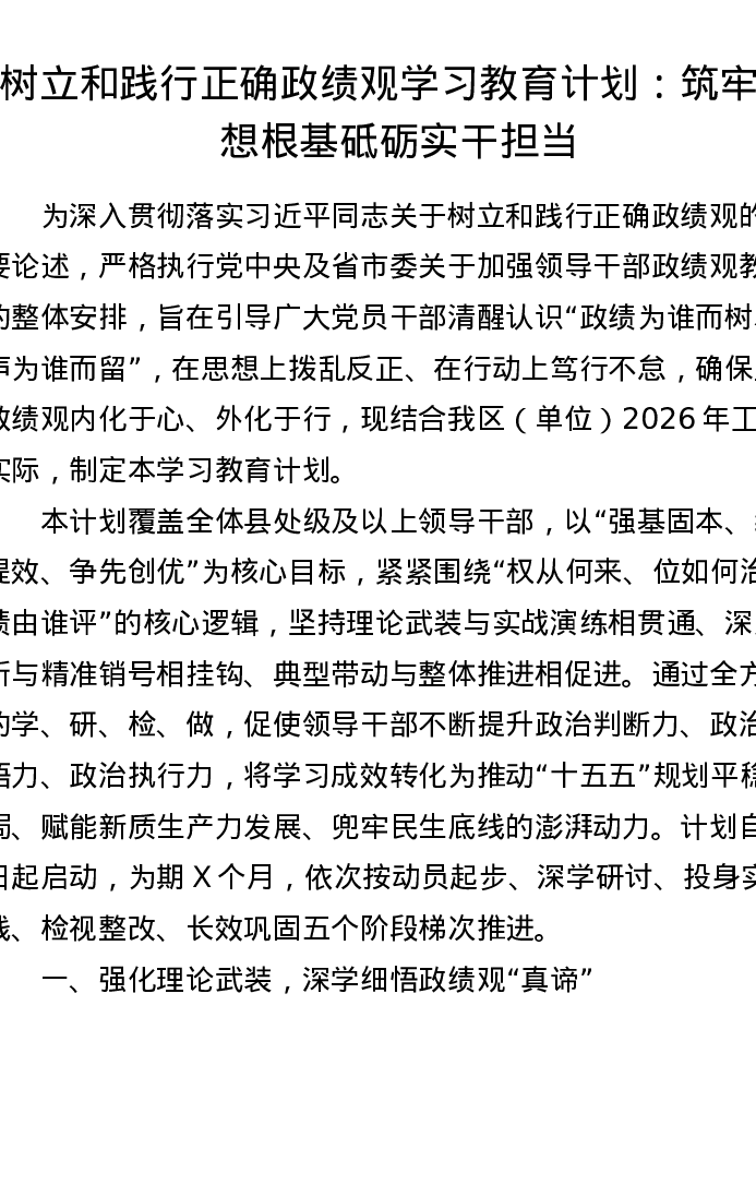 树立和践行正确政绩观学习教育计划:筑牢思想根基 砥砺实干担当
