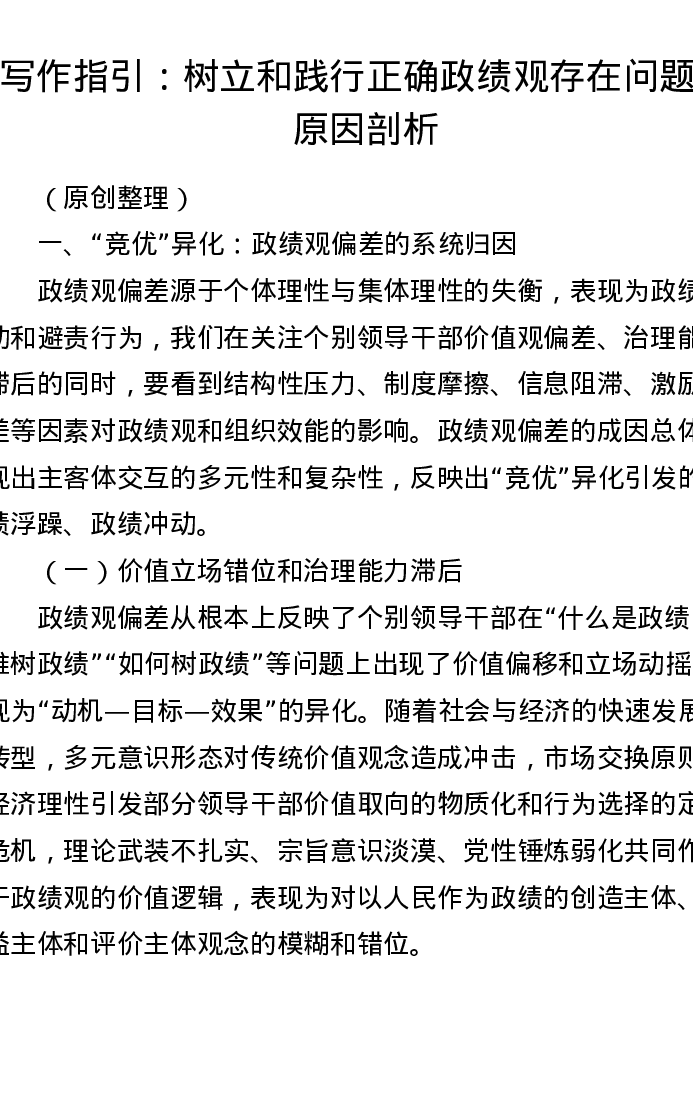 写作指引:树立和践行正确政绩观存在问题的原因剖析