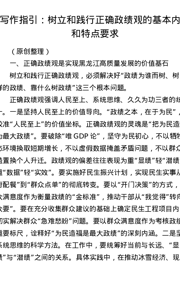 写作指引:树立和践行正确政绩观的基本内容和特点要求