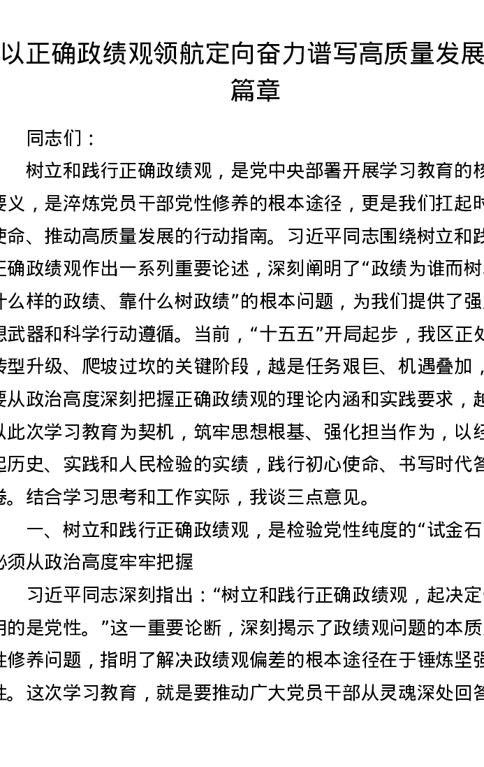 以正确政绩观领航定向奋力谱写高质量发展新篇章