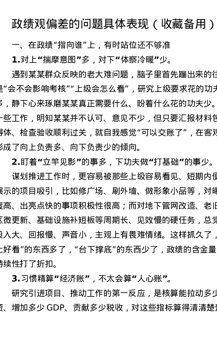 政绩观偏差的问题具体表现