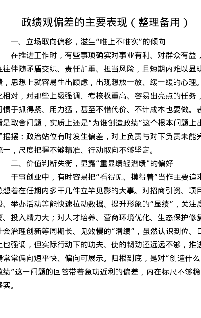 政绩观偏差的主要表现