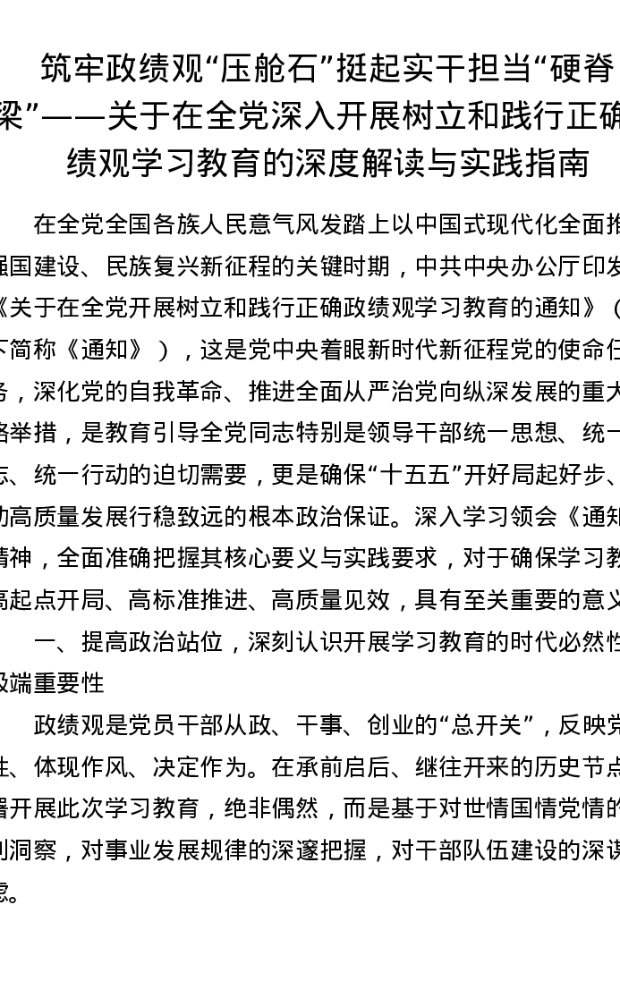 筑牢政绩观压舱石 挺起实干担当硬脊梁——关于在全党深入开展树立和践行正确政绩观学习教育的深度解读与实践指南