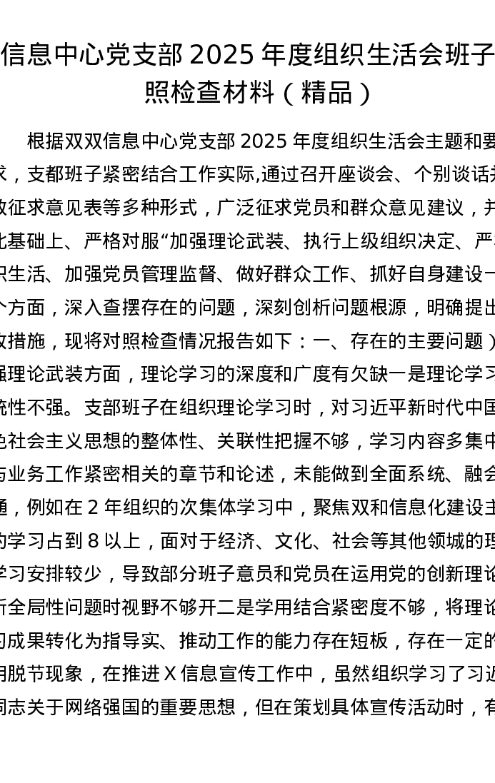 信息中心党支部 2025 年度组织xxx班子对照检查材料