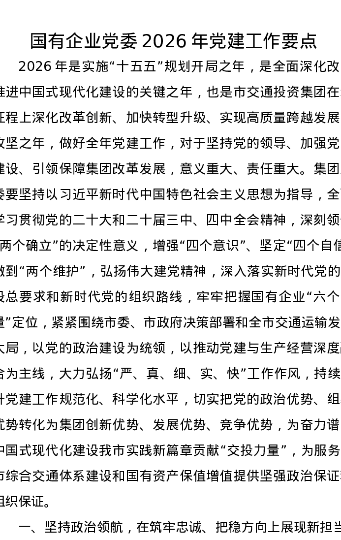 国有企业党委2026年党建工作要点