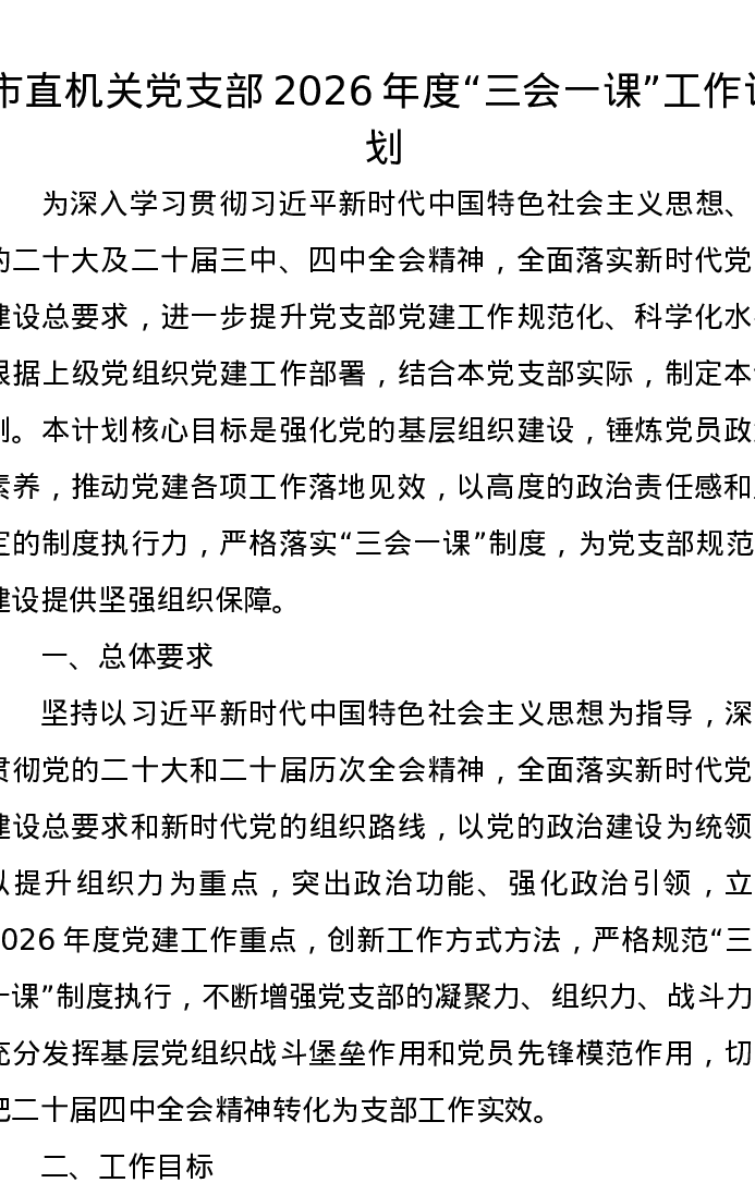 市直机关党支部2026年度三会一课工作计划
