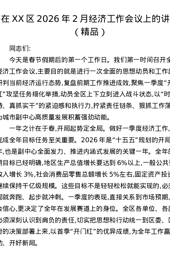 在XX区2026年2月经济工作会议上的讲话