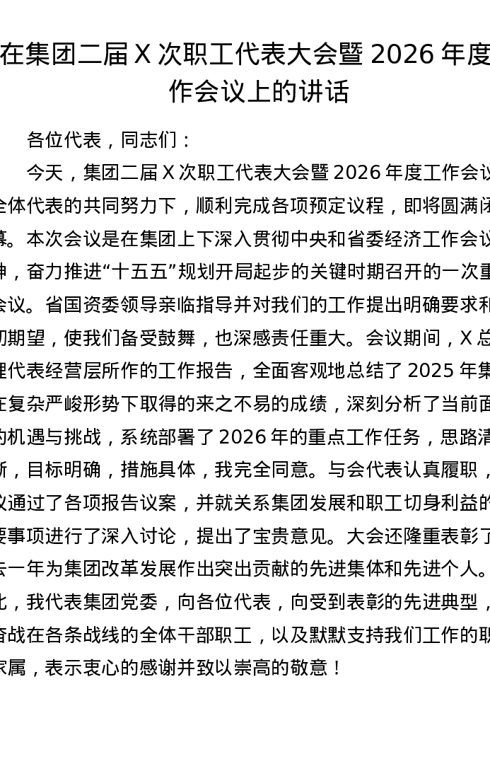 在集团二届X次职工代表大会暨2026年度工作会议上的讲话