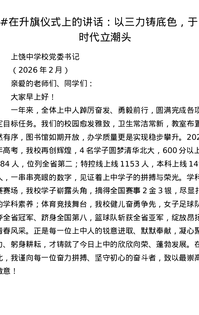 在升旗仪式上的讲话:以三力铸底色,于AI时代立潮头