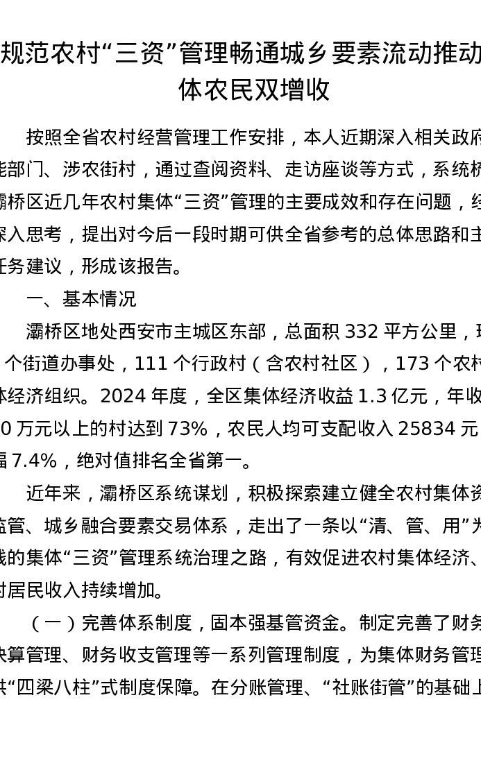 规范农村三资管理 畅通城乡要素流动 推动集体农民双增收