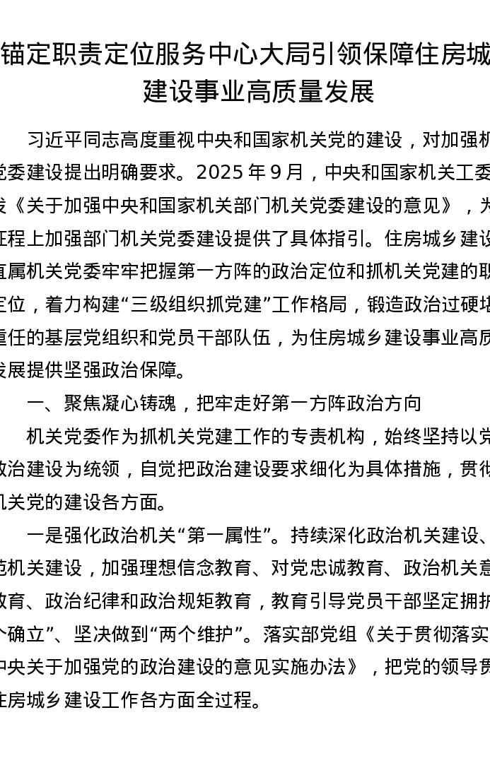 锚定职责定位 服务中心大局 引领保障住房城乡建设事业高质量发展