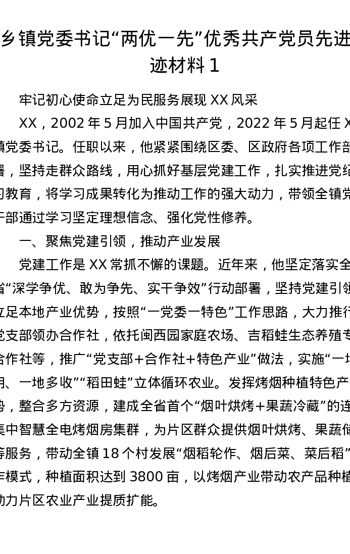 乡镇党委书记两优一先优秀共产党员先进事迹材料1