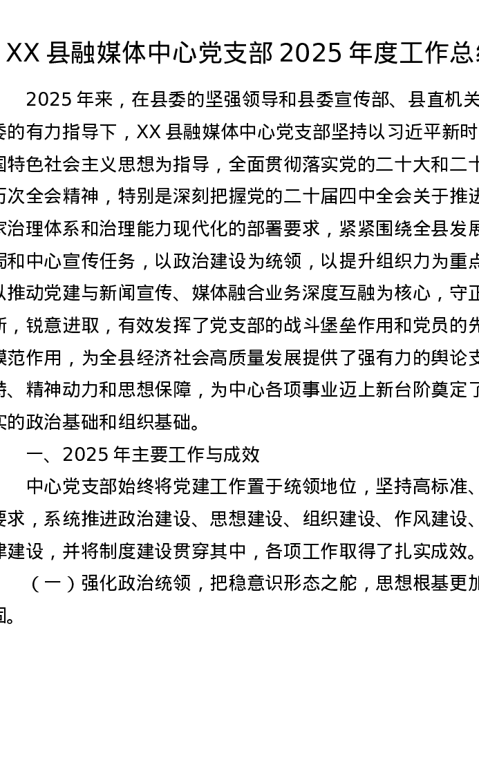 XX县融媒体中心党支部2025年度工作总结