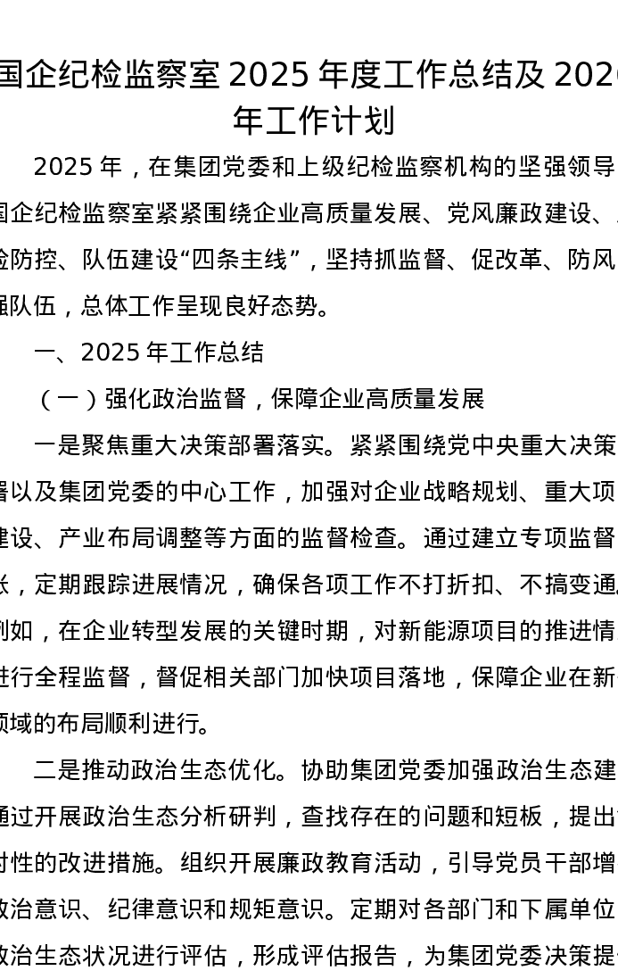 国企纪检监察室2025年度工作总结及2026年工作计划
