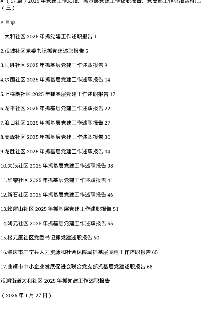 汇编:2025年党建工作总结、抓基层党建工作述职报告、党支部工作总结素材汇编(三)17篇