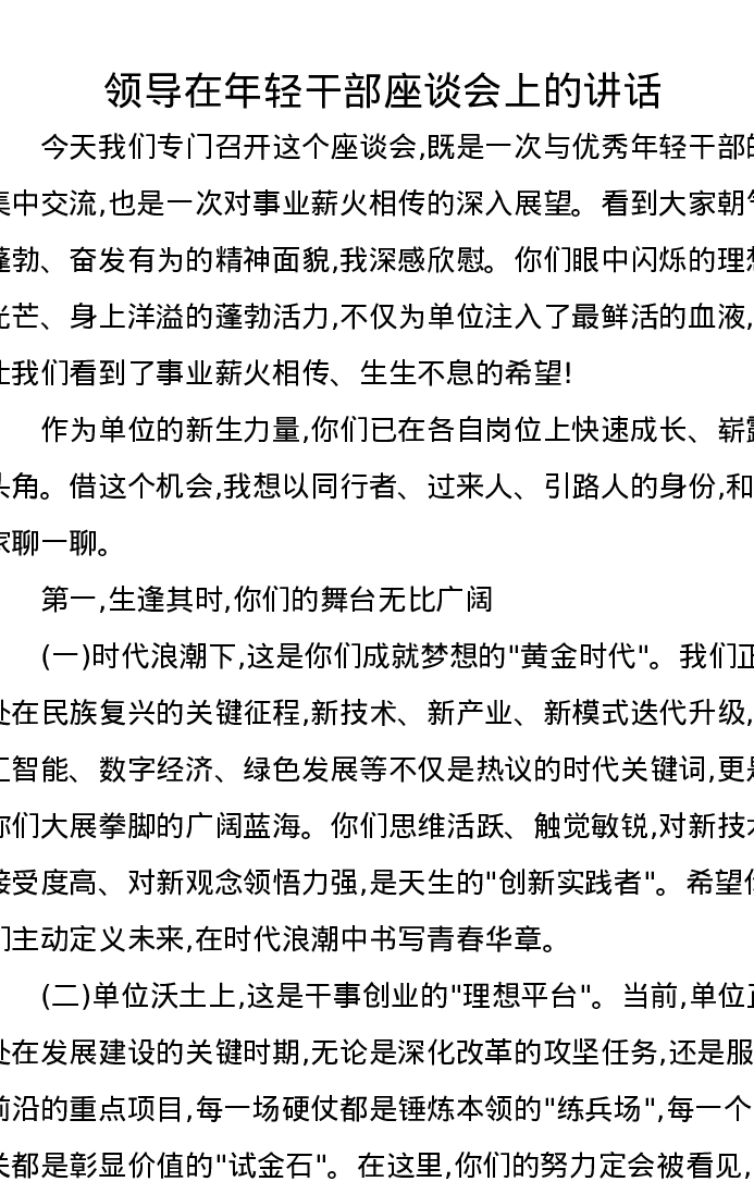 领导在年轻干部座谈会上的讲话
