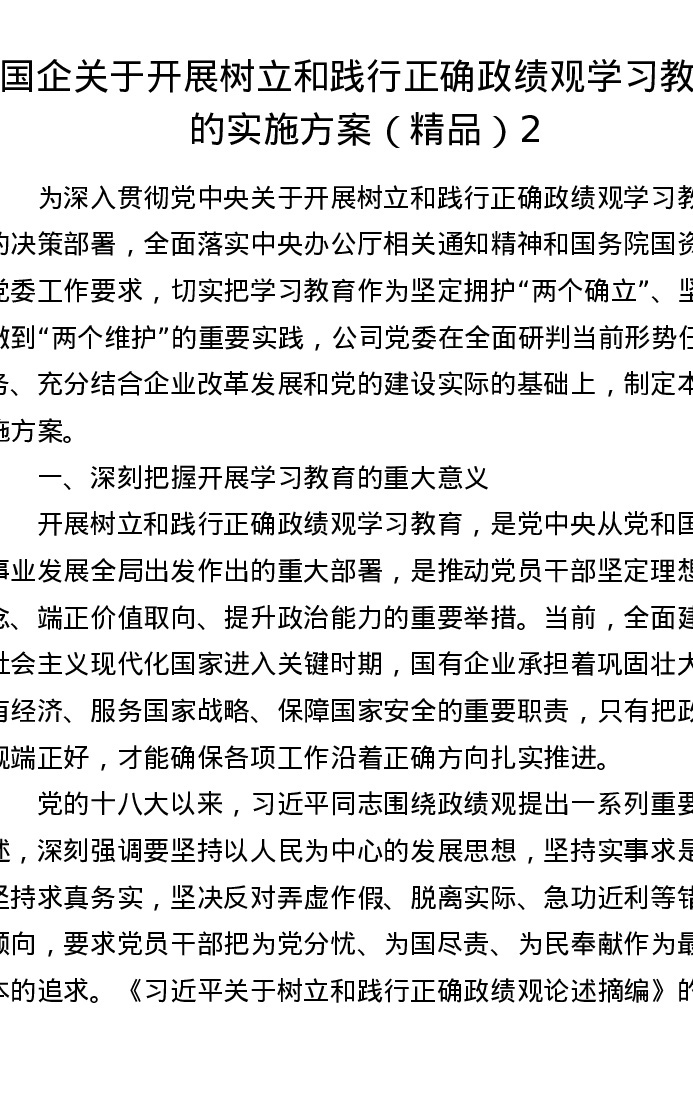 国企关于开展树立和践行正确ZJG学习教育的实施方案2