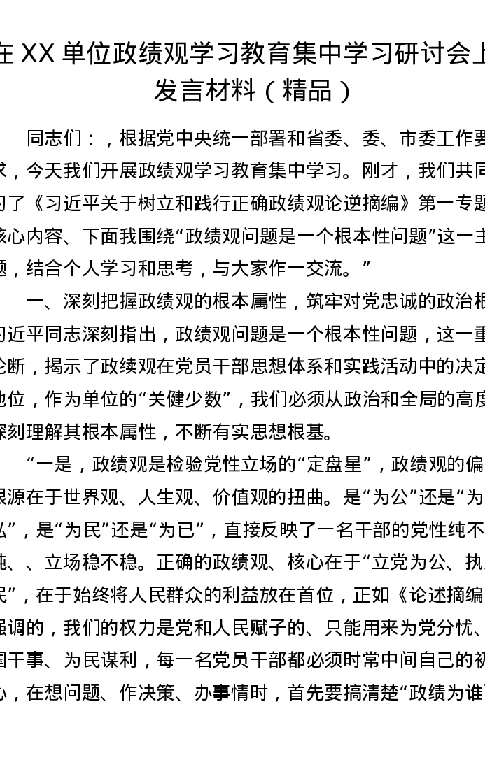 在XX 单位ZJG学习教育集中学习研讨会上的发言材料