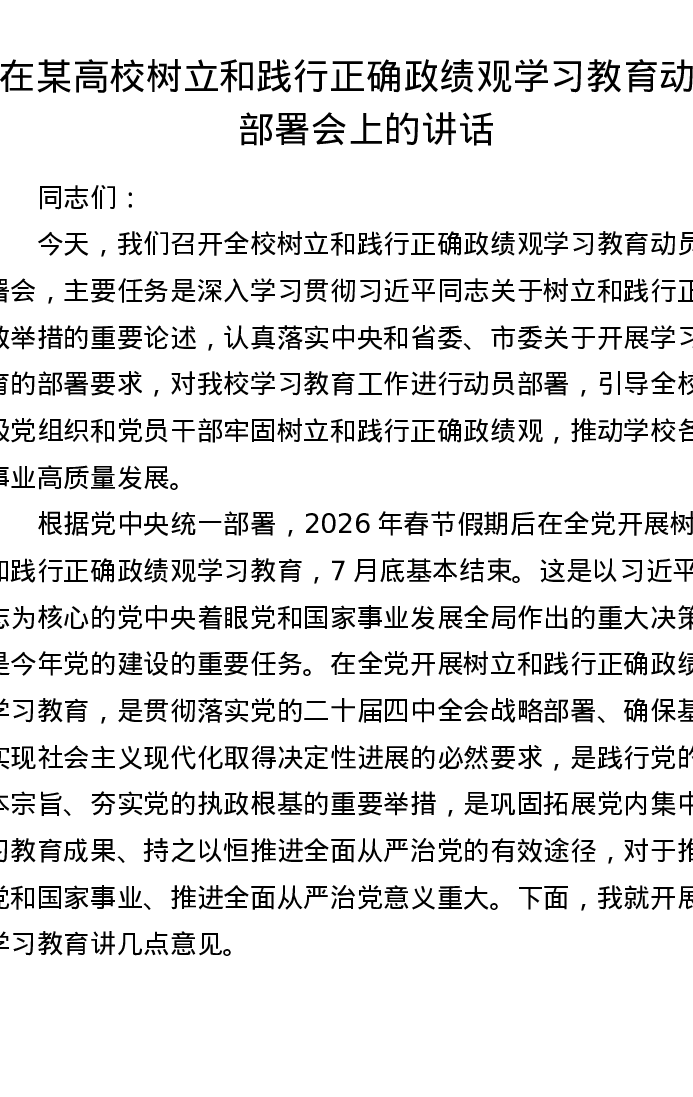 在某高校树立和践行正确ZJG学习教育动员部署会上的讲话