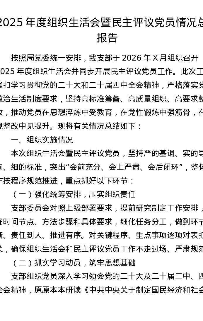 2025年度组织xxx暨民主评议党员情况总结报告