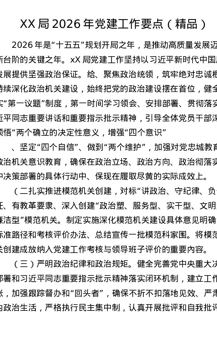 XX 局 2026年党建工作要点