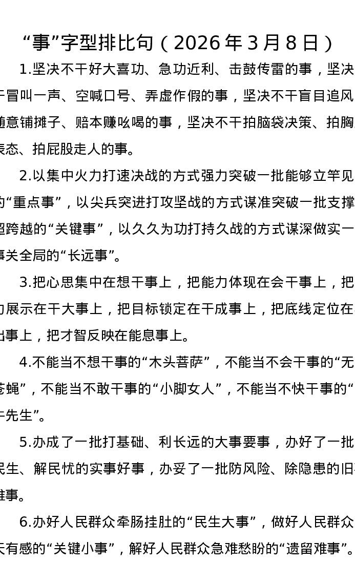 事字型排比句(2026年3月8日)