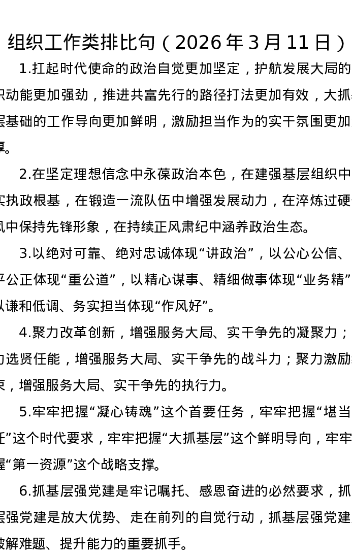 组织工作类排比句(2026年3月11日)