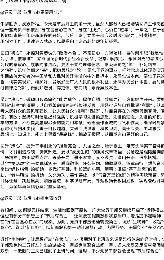 汇编:节后收心文稿选萃汇编18篇