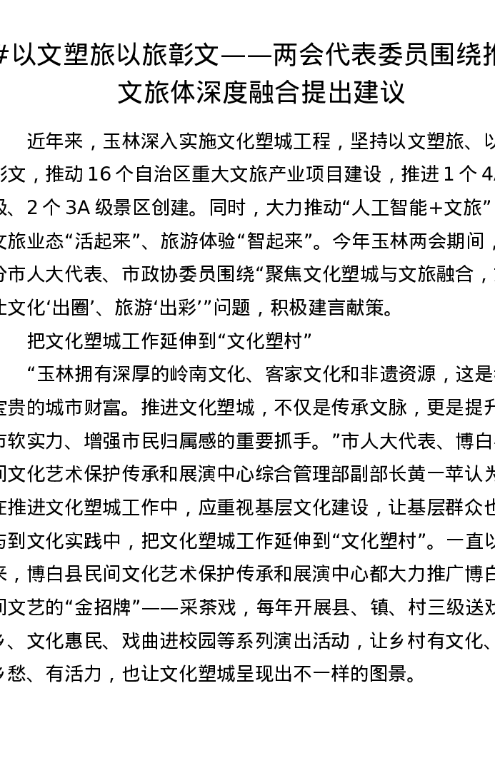 以文塑旅 以旅彰文——两会代表委员围绕推动文旅体深度融合提出建议